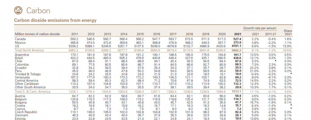 Según el nuevo informe 2022 de British Petroleum (BP), México Pasó del lugar 12 (2018) al 15 (2021) en la lista de países que más emiten Dióxido de Carbono (CO2) en el mundo.