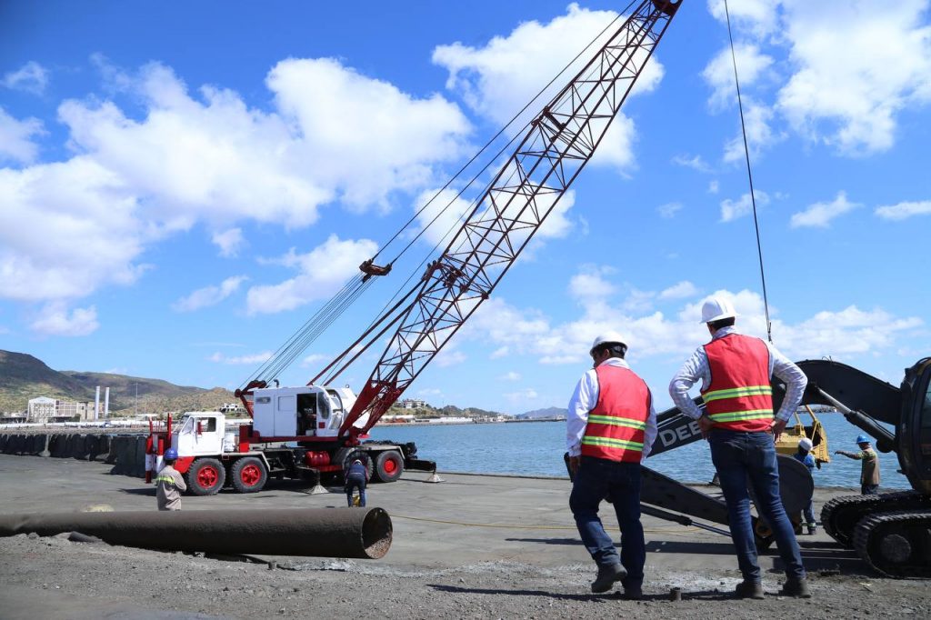 “Para realizar la continuación exactamente de este muelle, se requiere del dragado de construcción; para realizar el tablestacado, se requiere el dragado de construcción; para realizar el almacén de minerales, se requiere la habilitación de patios, que por cierto va a buen ritmo, en tiempo y forma lo vamos a sacar adelante”, comentó.