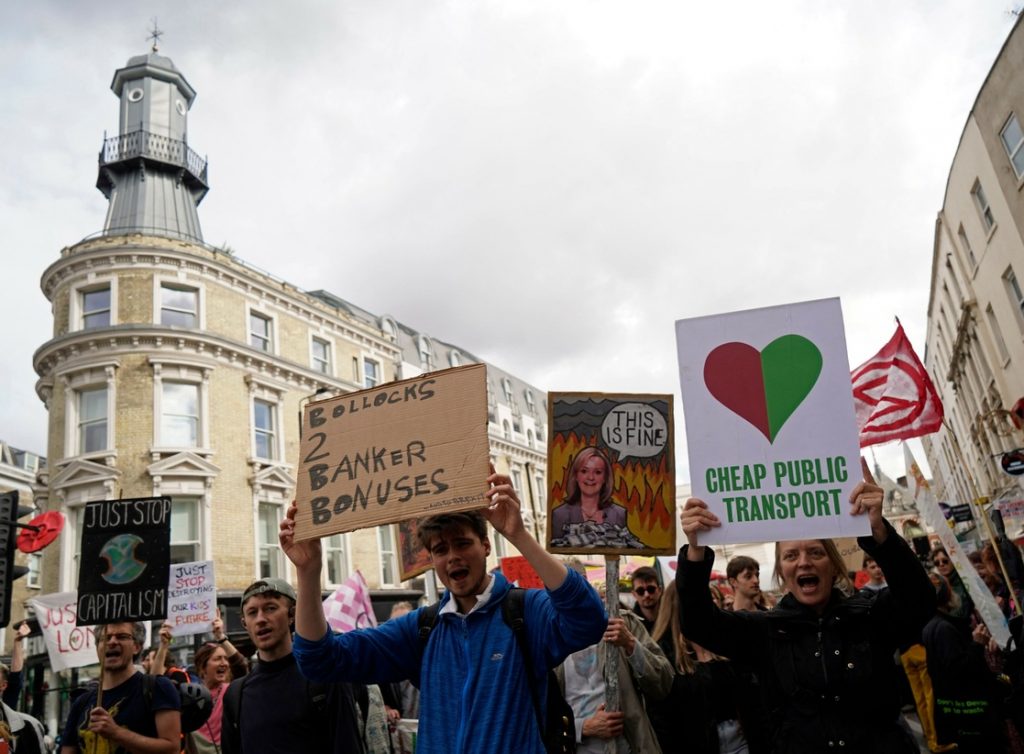 Miles de británicos salieron a las calles el sábado para protestar contra la crisis del coste de la vida, mientras el gobierno asume mal su política presupuestaria después de una semana de caos en los mercados. La inflación está en su punto más alto, la libra esterlina está en su punto más bajo y la preocupación aumenta a medida que se acerca el invierno.